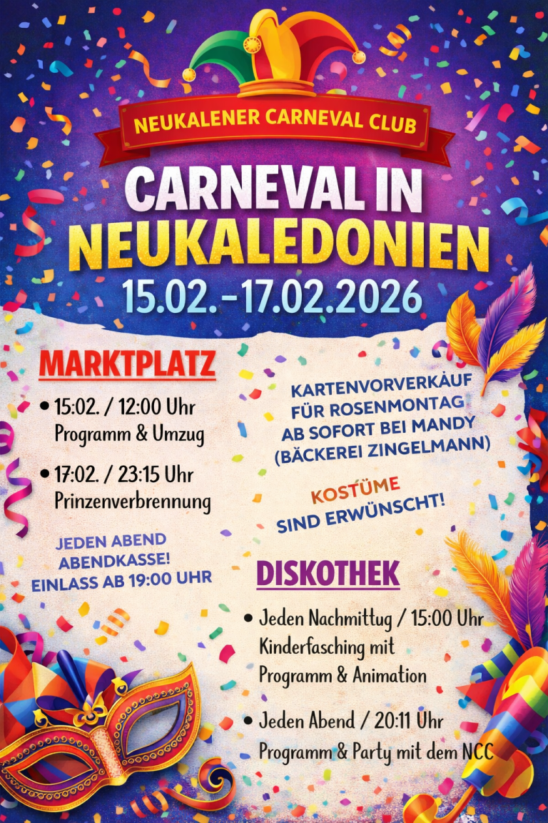 Der Neukalener Carneval Club lädt ein zum 68. Karneval in Neukaledonien!